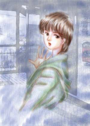 ★KJの写真を移動でイラストに重ねます。写真を重ねた後、人物部分は消しゴムで消してます。