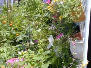 | この、ごちゃごちゃ風景を見てください。 梅雨明けしてから、屋根を直すということで、工事になると家の周りに足場を組まねばならないらしいのです。 家の周りにやたらと鉢植えを置いていた私は、駐車場の片側に花たちを緊急避難させました。 いっぺんにはできそうにないので徐々に移動してます。 そのため、元々ごちゃごちゃしていたのが、もうえらいことになってます。 これでは、夏の盛りに風通しの悪さから、病気が出るのは避けられないかも…と今から、心配してます。 でも、まあ、屋根のことがあるので致し方ないというところでしょうか(こら、こら、そんな暢気でいいのか!)。 |