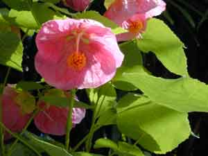 | 4枚目はアブチロンという花です。 下向きの花なので、あまり目立ちませんが、花の形と色合いが好きです。 仲間にチロリアンランプと呼ばれる種類があるのですが、これはもう、丈夫そのもの。(5枚目の写真) 冬も咲いているというすごさ…。 あまり丈夫すぎて、ちょっとありがたみが薄いかな…? |