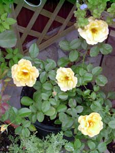 左の写真は夏に手に入れたバラ苗が最近咲いた様子です。